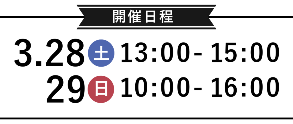 | 開催日 | 03/28(土) 03/29(日) |