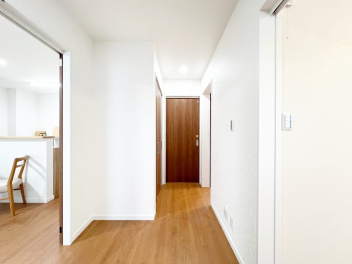 コンパクトで暮らしやすい22坪。ホールを介してリビングと寝室を分けることで、プライバシーを保ちつつ自然な動線を実現しました。さらに、玄関へのアプローチにも工夫を凝らし、少しゆとりを持たせることで人の出入りがスムーズに。外観の印象も一層引き立ちます。