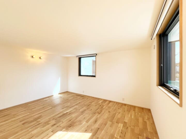 リビングにつながるフリースペースは、子どもが小さいうちは遊び場や客間として、将来は2部屋に分けて子ども部屋として使える設計。