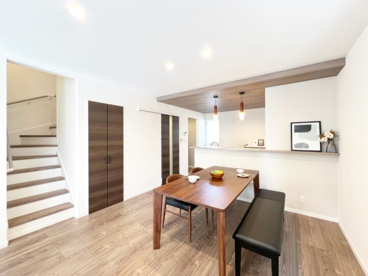 ご家族皆様でゆったり過ごすのはもちろん、友人を招いてホームパーティーも楽しめる、開放感あふれるLDKです。
